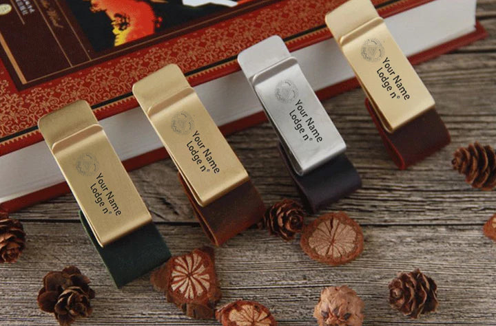 Grand Master Blue Lodge Pen Holder - Leather Brass