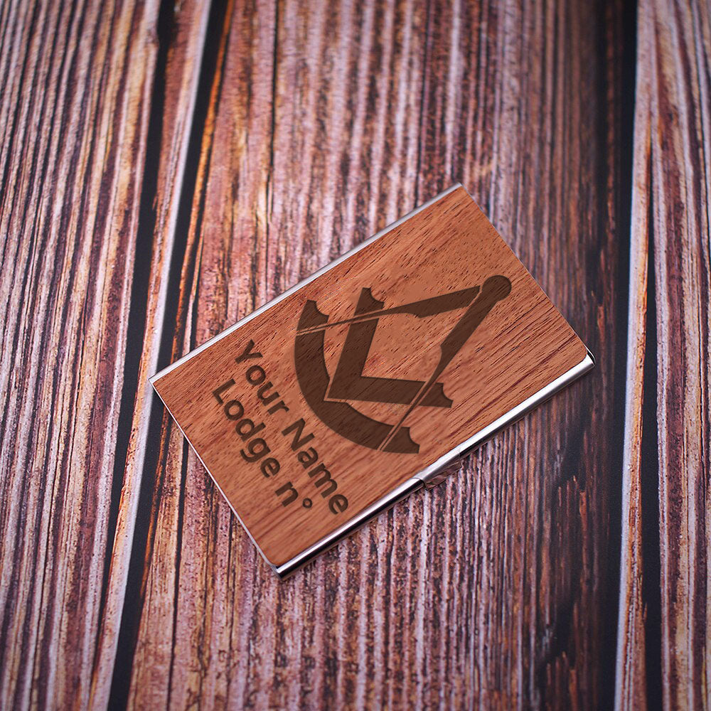 Impress your freemason friends and family with a kind wood business card holder. Made from the finest, hand selected woods available, each one of our slim and stylish wooden business card features a stainless steel body and real wood finish for premium quality & design.