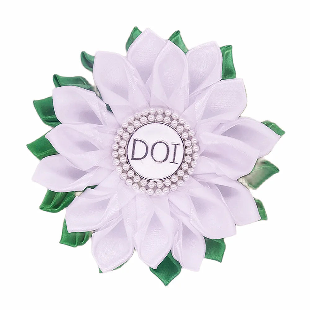 Embrace elegance and tradition with our PHA DOI Brooch featuring a silk ribbon adorned with a white and green corsage flower pearl. This exquisite brooch pays homage to the Prince Hall Affiliated Daughters of Isis, showcasing the symbolic colors and floral beauty representing purity and growth. Meticulously crafted, this brooch embodies grace and heritage. Wear it proudly as a distinguished emblem, reflecting the esteemed values and unity within the PHA DOI sisterhood.