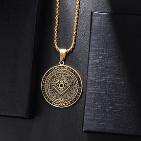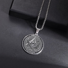 Elevate your style with our stunning Eye of Providence Necklace. Made from high-quality silver and gold zinc alloy, this piece is eye-catching and versatile. Perfect for any occasion, this necklace is a unique addition to any outfit and will surely draw attention. Embrace the mystery and power of the Eye of Providence with this beautiful necklace.
