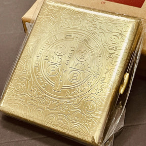 Elevate your smoking experience with this vintage-inspired cigarette case adorned with the emblem of the Knights Templar Commandery. Crafted from high-quality copper, this cigarette case features intricate detailing and a stylish antique finish. With a capacity to hold up to 20 sticks, it combines practicality with historical flair, making it a must-have accessory for any discerning smoker.