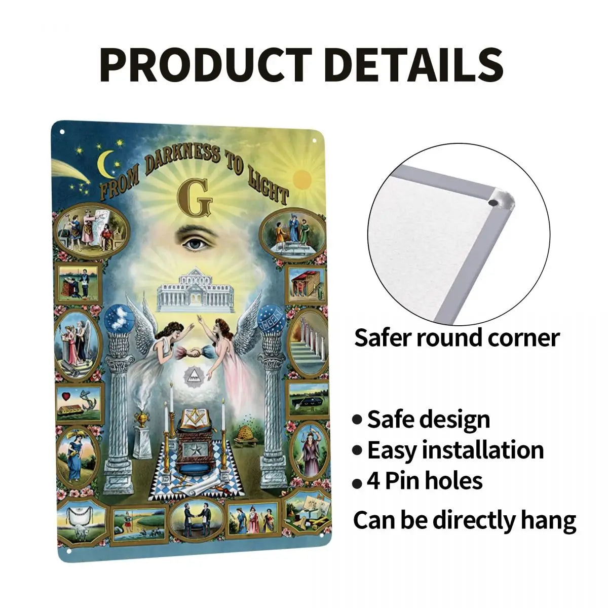 Illuminate your space with the profound symbolism of the Masonic Canvas. This canvas is enhanced by an intricately designed metal sign plaque, adding a striking dimensionality to the artwork. The combination of canvas and metal creates a powerful visual representation of the journey from darkness to enlightenment, a cornerstone of Masonic tradition. Ideal for lodge decor, offices, or personal collections.