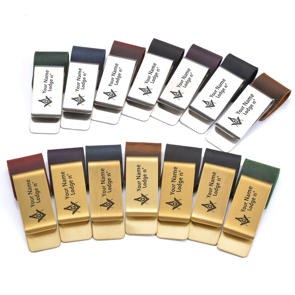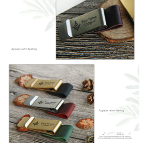Master Mason Blue Lodge Pen Holder - Leather Brass